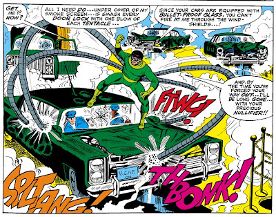 For some reason, it’s almost like they didn’t have comic books quite figured out yet. The words and the pictures, instead of complimenting each other, basically said the same stuff. You see Spider-Man webbing up the pin, AND he makes sure to remind us in the text as well. Not the most egregious comic book problem of all time, but it does make it clear (to me, at least) that they’re being written and drawn by separate people here.