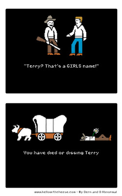 Because after the initial excitement wore off and I wiped up, I remembered that there was the AWESOME Oregon Trail (1992-ish) that I came to know and love in elementary school, and the shitty version (1995-ish) that had better graphics, but was mouse-dependent and everything else about it was total shit.